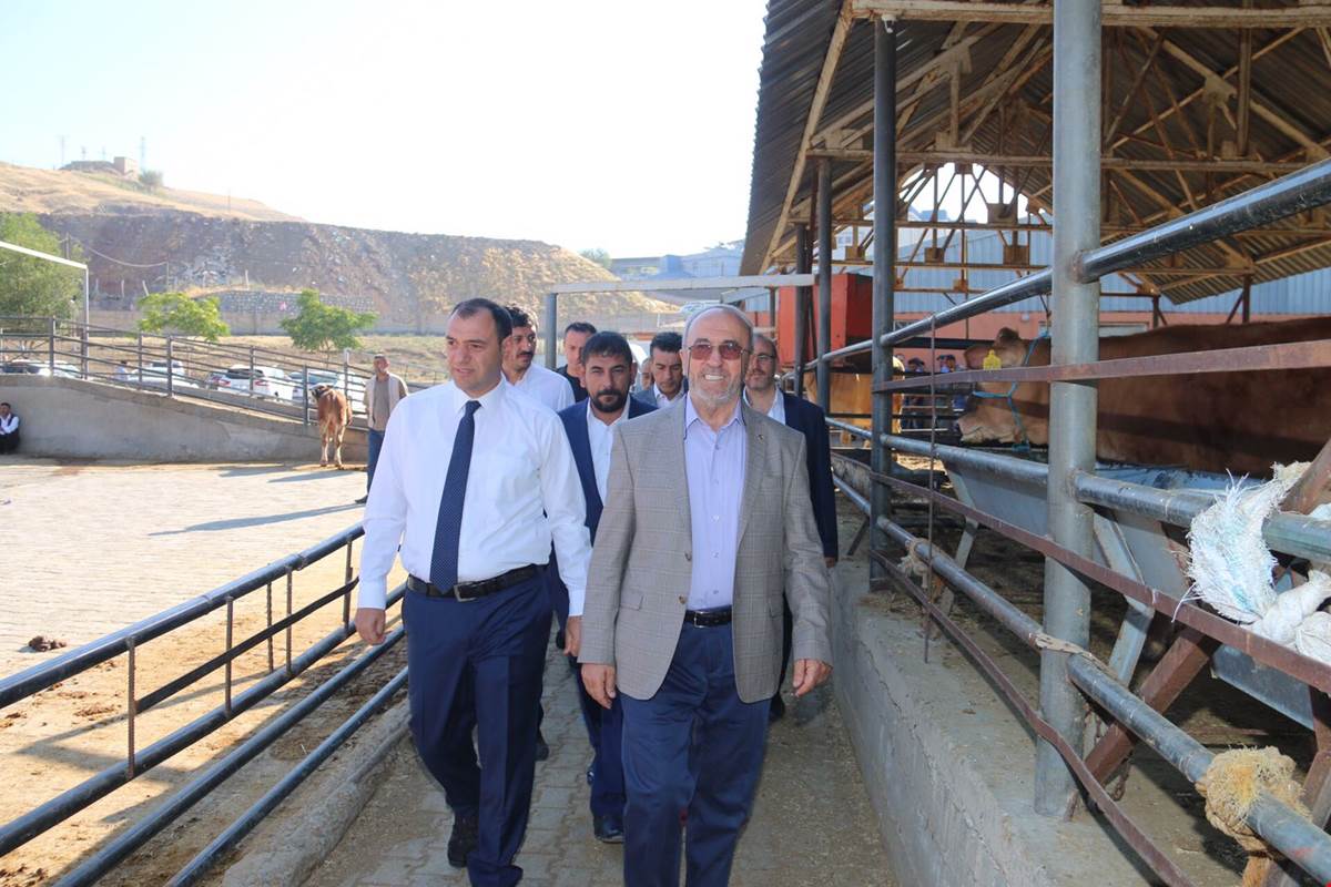 Elazığ Valisi Çetin Oktay Kaldırım sabah erken saatte önce Hayvancılık Organize Sanayi Bölgesi ve Canlı hayvan park pazar yerine gelerek incelemelerde bulundu.