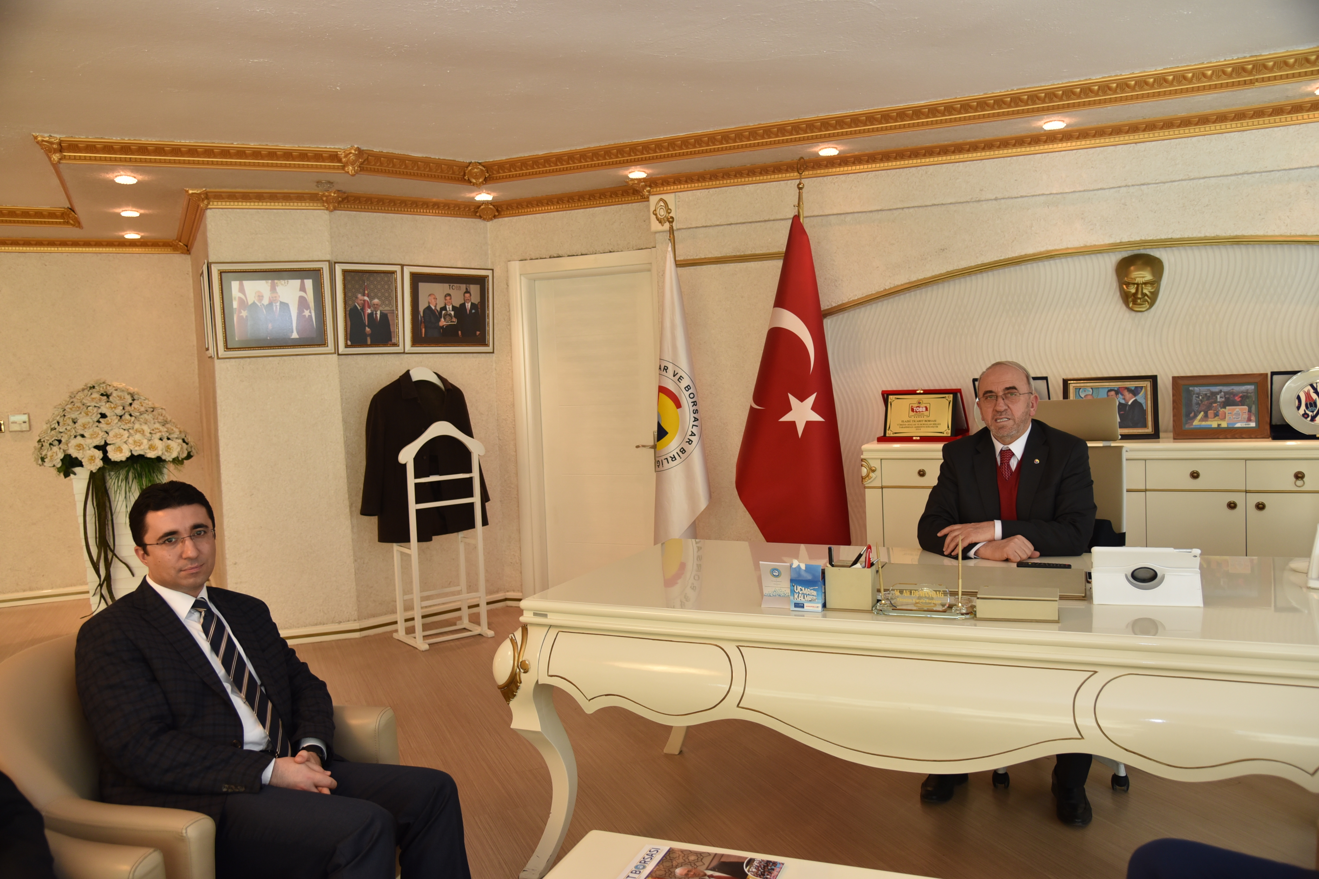Elazığ ili Karakoçan ilçesi Kaymakamı Mehmet Kocabey ve Karakoçan Heyeti Elazığ Ticaret Borsası Başkanı Mehmet Ali Dumandağ 'ı ziyaret Etti.
