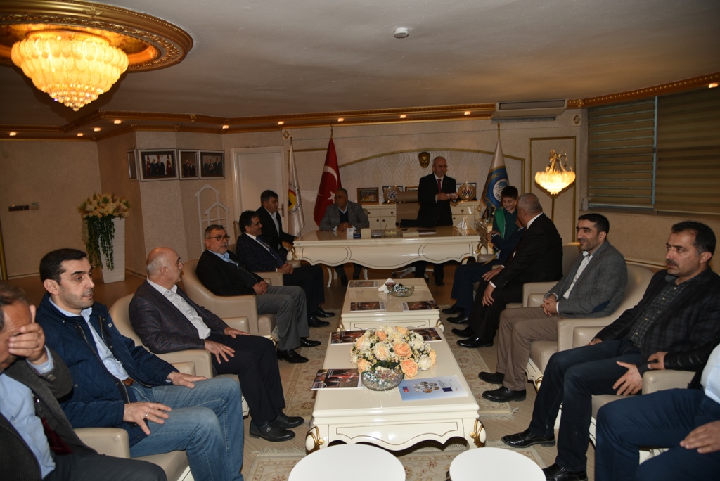 Ak Parti İl Başkanı Ramazan Gürgöze ve Yönetim Kurulu üyeleri Elazığ Ticaret Borsası Başkanı Mehmet Ali Dumandağ'ı ziyaret ederek, Ticaret Borsası'nın çalışmaları hakkında bilgiler aldılar.