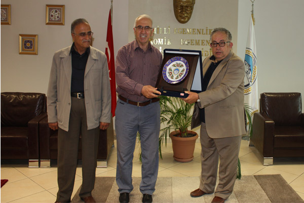 Kayseri Ticaret Borsası Başkanı şaban Ünlü Ziyaret anısına Elazığ Ticaret Borsası başkanı Mehmet Ali Dumandağ’a bir plaket takdim etti.