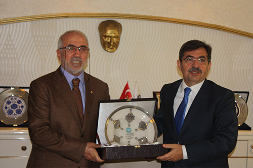 Konuşmaların ardından Elazığ Ticaret borsası Başkanı Mehmet Ali Dumandağ Çevre ve Şehircilik Bakanı İdris Güllüce’ye bir plaket takdim etti.