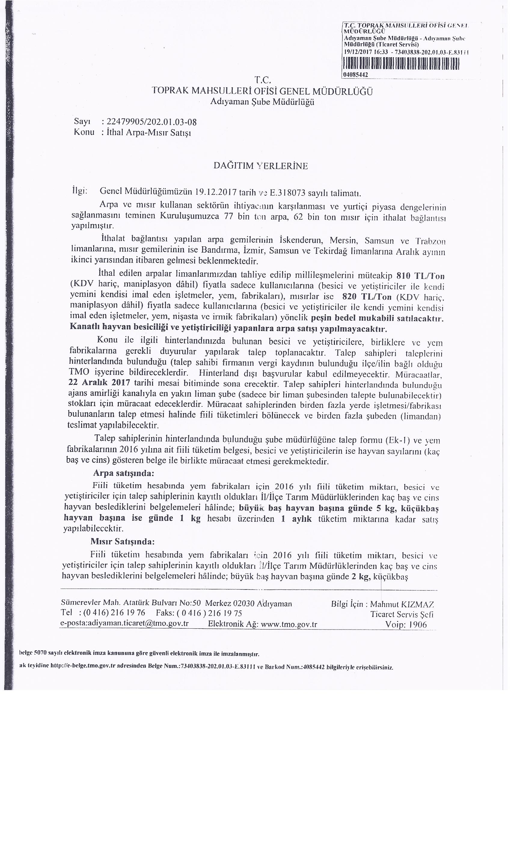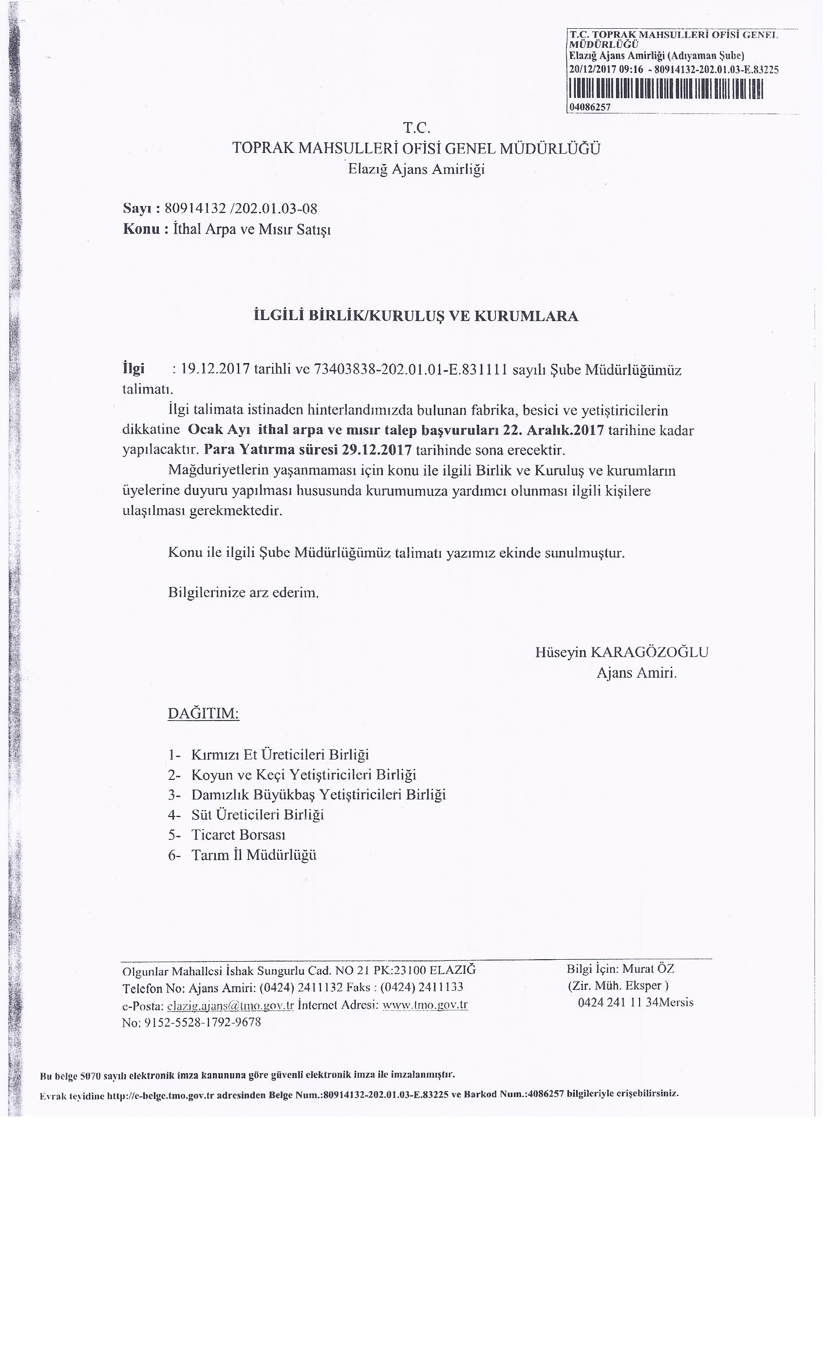 TOPRAK MAHSULLERİ OFİSİ ARPA VE MISIR TALEP BAŞVURULARI BAŞLAMIŞTIR...