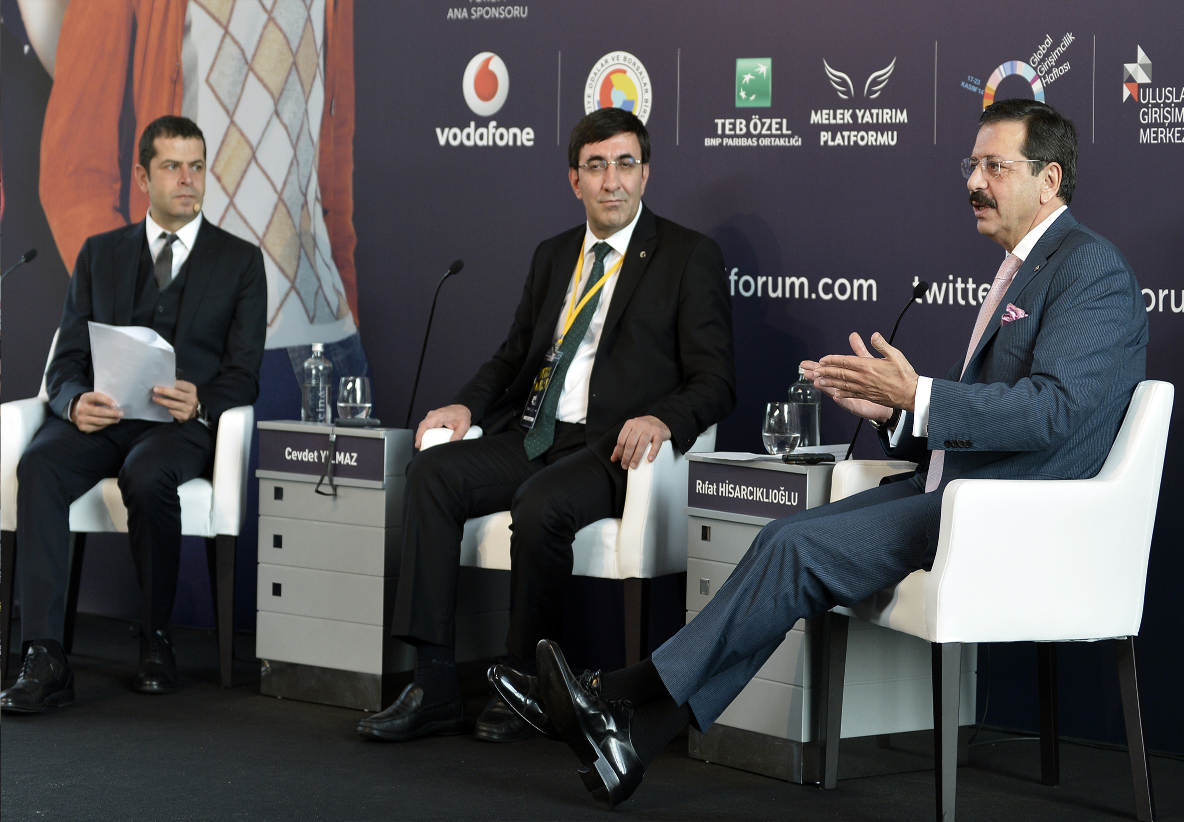 TOBB Başkanı M. Rifat Hisarcıklıoğlu ve Kalkınma Bakanı Cevdet Yılmaz, G3 Forum’u kapsamında, Gazeteci Cüneyt Özdemir’in moderatörlüğünde düzenlenen “Türkiye Ekonomisi ve Girişimcilik” konulu panele katıldı.