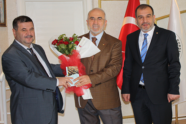 Elazığ Ticaret Borsasında düzenlenen Kutlu Doğum Haftası etkinliği öncesinde Elazığ Müftüsü Peyami Güngör katkılarından dolayı Elazığ Ticaret Borsası Başkanı Mehmet Ali Dumandağ’a gül ve kitap hediye etti.